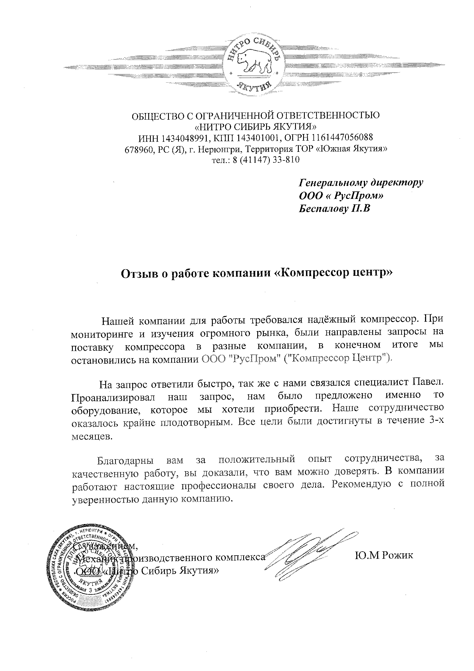 Ю.М. Рожик, ООО «Нитро Сибирь Якутия»