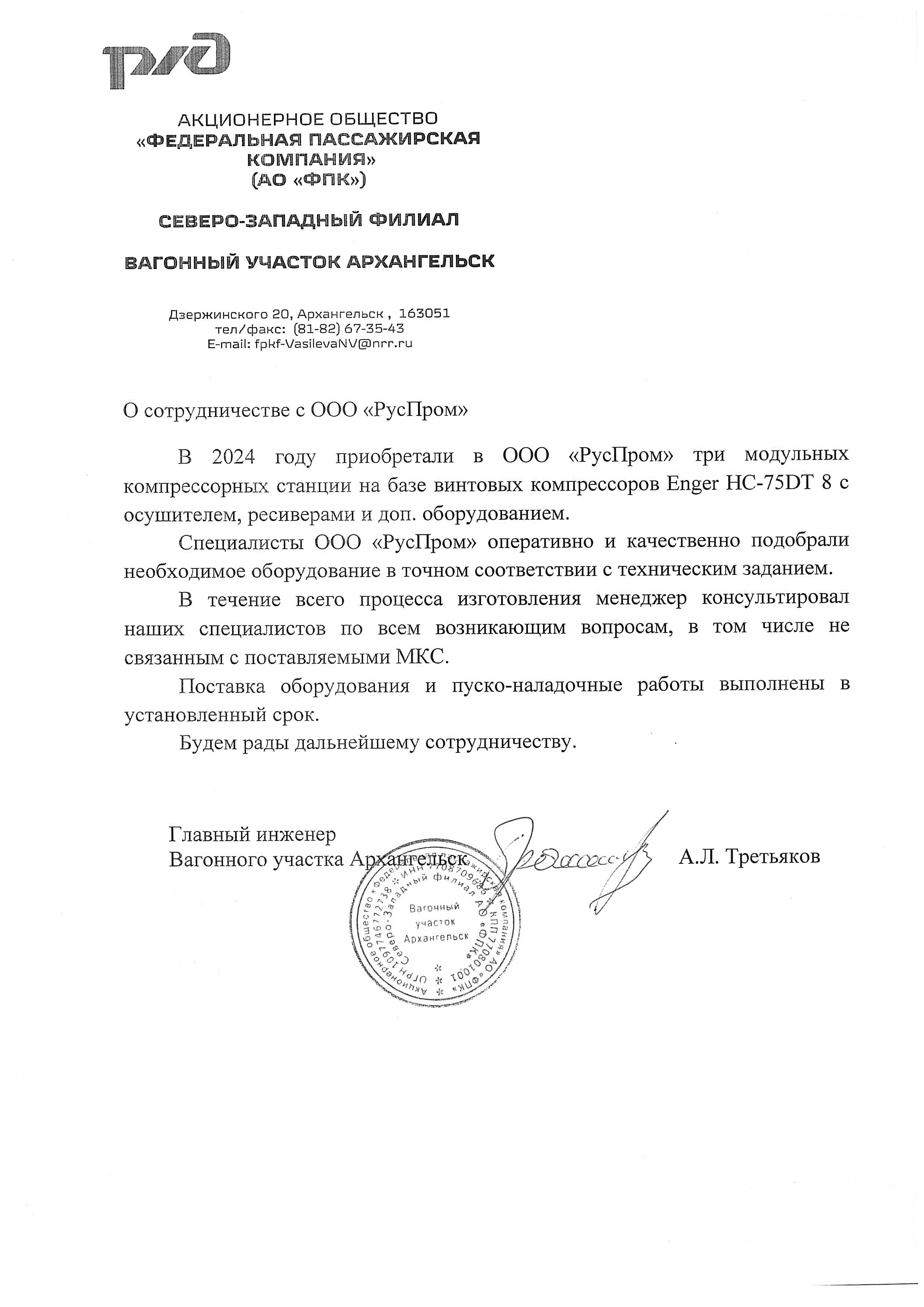 Главный инженер вагонного участка Архангельск